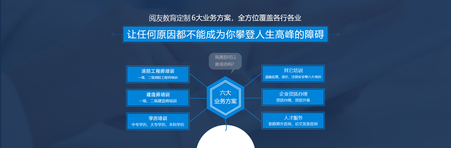 阅友教育咨询坚持“诚信教学 打造职场优秀人才;着眼未来 赋于学员全球眼光”的核心价值观,致力于打造国内知名 的“考试资讯、报名、学习、就业”一站式服务平台。其主要业务涵盖:消防工程师、建造师、注安师、造价师、监理 工程师等,同时还提供学历提升、企业资质办理、职称评定咨询等服务,为提升学员社会竞争力,打造学员职场 优势, 赋予学员长远发展目标而努力。