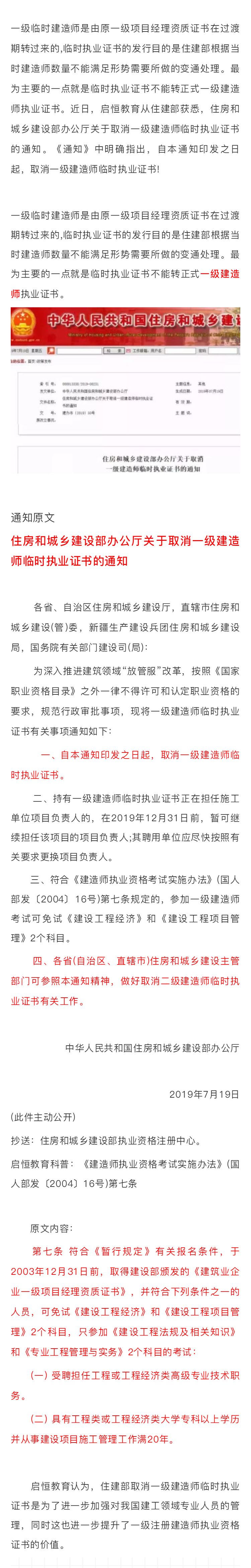 重磅!住建部官宣:即日起取消一级建造师临时执业证书!